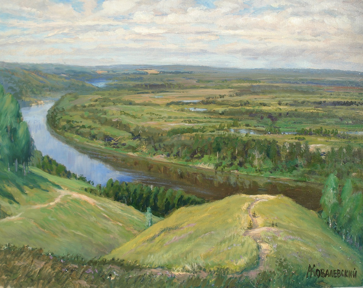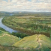 Недалеко от Гороховца есть чудное место, вид с высоты птичьего полёта, Лысая гора. Написал вид на первозданную, нетронутую людьми Клязьму.