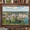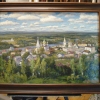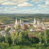 Inspired by the panoramic view of the town of Gorokhovets. It stretched out on the banks of the Klyazma like a magical glowing bird. A view as if it exists outside of time. I tried to convey the vastness, light, and beauty of the panorama.