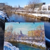 Managed to catch the Moscow sunshine. View of the great monument by Vera Mukhina at VDNKh. Spring. The snow has started to melt, although it is still frosty at night.