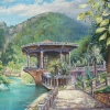 The railway station building is an example of public architecture from that era. It is beautifully integrated into the landscape. I tried to convey my feelings from observing sunny Abkhazia and its gem – New Athos.