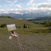 The view of the mountain range was inspiring. The vastness, eagles soaring, and here and there, patches of sunlight on the snow and foothill slopes.