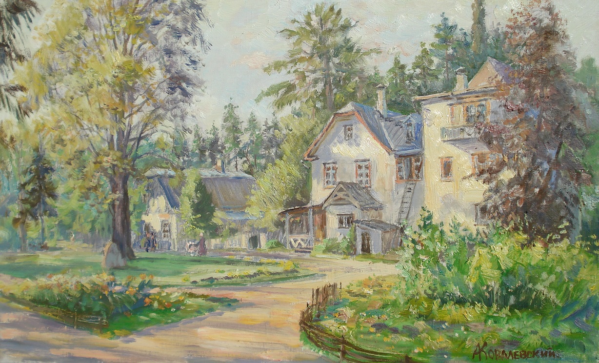 I brought the exhibition to the Polenovo museum-estate. The main house, built according to the artist's sketches, is about 130 years old. The place is magical, and the view of the Polenovo house amazed me with the freshness of the morning colors, the airiness, and the brightness of the hues.