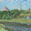 Early morning in Torzhok. The Borisoglebsky Monastery rises above everything. The Tvertsa flows quietly, reflections are bright, everything is bathed in the first rays of the sun.