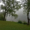 Everyone is asleep. The fog spreads and swirls. A magical impression drew attention to the motif. Giant birches, Akademichka is sleeping, silence and peace.