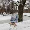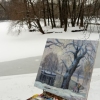 Terletsky Park captivated me. I wrote this work both in the studio from a sketch and from life. I tried to convey the freshness of the colors, the delicacy of the snow, the harshness of the wet bark, the sparkle of the icy water, and the joy of the first snow.