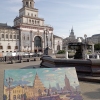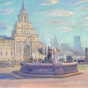 I was amazed by the beauty of the architectural ensemble of the Kazansky railway station – a building conceived as a grand gateway between Europe and Asia, which became an architectural manifesto of its era. In the rays of the setting sun, the light plays in pinkish-orange hues, and the shadows are vivid violet-blue. I tried to show the connection between eras and the harmonious combination of different architectural styles.