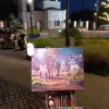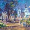 Captured the image of an evening, surreal fairy-tale Zvenigorod, all the colors are different, the mood is some kind of festivity. The Church of Alexander Nevsky rises mightily in emerald-blue reflections, the trees are lilac-purple-emerald, the shadows are lilac, the spots of light range from reddish to pink. A fairy-tale view.