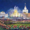 Since my student years, I wanted to write about it. A beautiful fountain, an evening spectacle of light, color, a magical life of the capital. I convey this mood in my work. I painted it with lighting, intending a series on evening life.