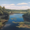 Берега — зелёные, сочные, словно вышитые из тысяч оттенков: от тёмной листвы дубов до светлой листвы берёз, от бархатистой тени кустарников до золотистой травы на опушке.