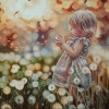 This original artwork "Girl with dandelions” was created by the contemporary Russian artist Elena Georgitsa and is available for sale online.