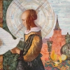 Behind the girl, in the background, you can see a panorama of Delft, recognizable by the high spires of churches and distinctive architecture. However, Delft in Victorov’s depiction is not just a landscape, but rather a memory, a dream, an image passed through the prism of time and personal perception.