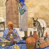 The painting conveys the atmosphere of an oriental morning, the measured bustle of the market and simple human communication. It is filled with light, warmth and a sense of life, which combines tradition, work and peace.