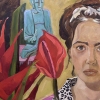 This original artwork "Self-portrait with Buddha" was created by the contemporary Russian artist Anastasia Goreva and is available for sale online.
