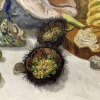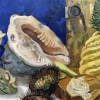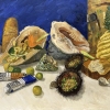 The composition is filled with various textures - from the rough surface of the shells to the softness of the bread and patinated wood in the background. Each element seems carefully thought out, be it shapes, colors or their arrangement. The painting embodies the harmony of natural diversity and the human desire to come into contact with this beauty.
