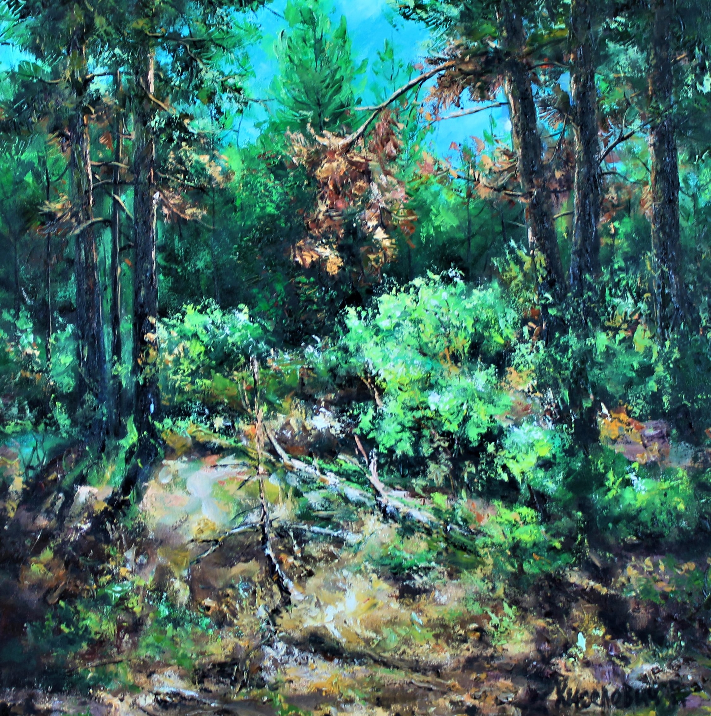 «Forest Symphony» by Gennady Kiselevich is an immersion into wild, rich nature. The painting conveys not only visual details but also the scents of the forest, its shady coolness, and sounds — a true symphony of life in the summer woods.