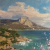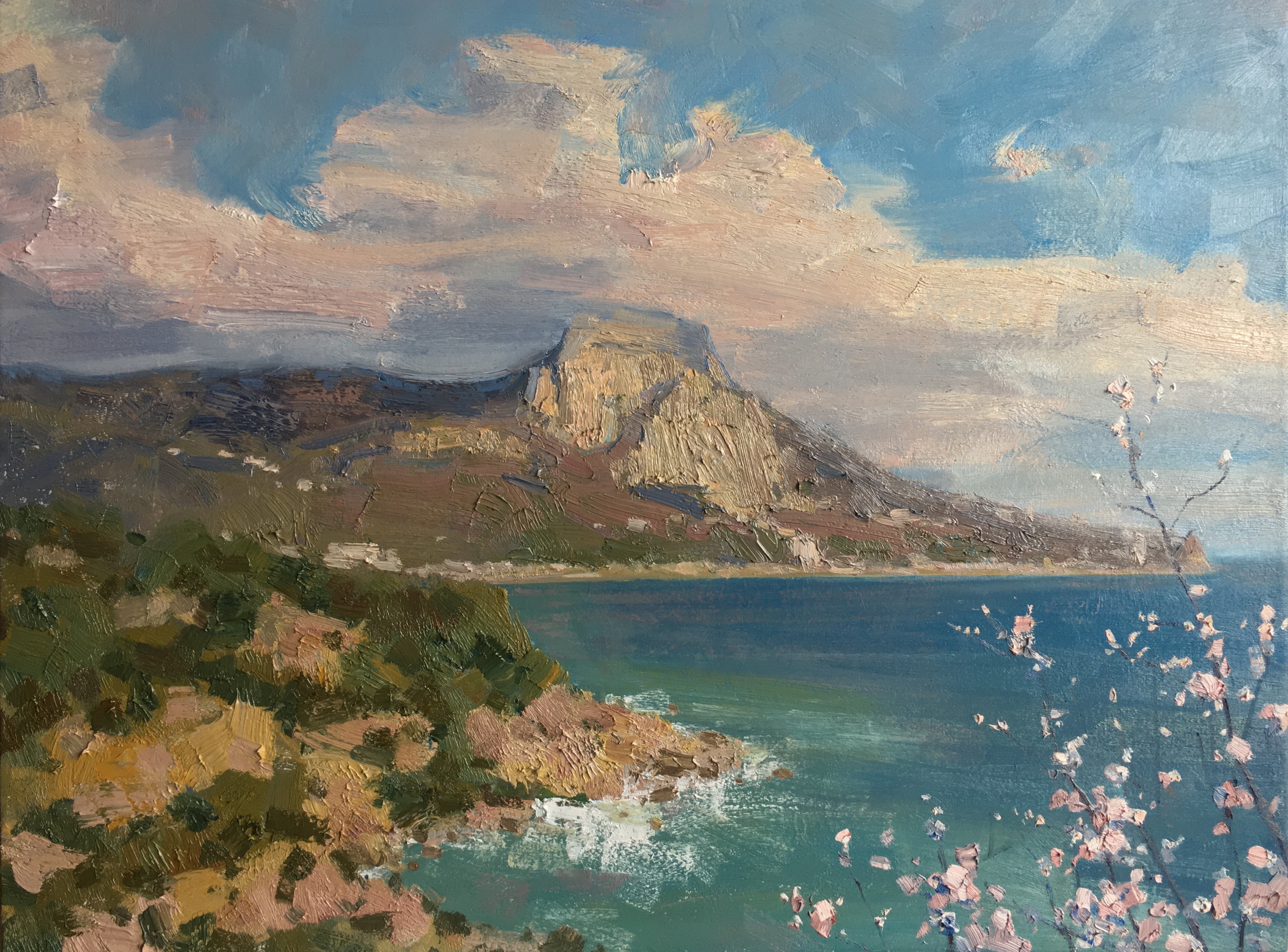 The painting "Deep harbor. Blossoming almond" by Albert Shchitkov is not just an image of the Crimean landscape with blossoming almond, but a heartfelt rendering of the state of nature during the period of spring awakening, filled with light, warmth and the aroma of flowers. The artist masterfully creates an atmosphere of peace and harmony, capturing on canvas the beauty of the Crimean mountains, the sea surface and the tenderness of blossoming almond.