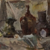 Albert Shchitkov’s painting “Still Life” is not simply a depiction of objects, but a demonstration of the artist’s skill in conveying expression, color, and texture. Abandoning detail, Shchitkov concentrates on conveying the overall impression, creating an atmosphere, and playing with light and shadow.