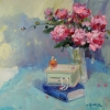 Albert Shchitkov’s painting “My Woman” is not just a still life with flowers and objects, but a heartfelt declaration of love embodied in imagery. Next to the vase is an elegant perfume bottle, a jewelry box, and a stack of books. All the objects are arranged against a soft drapery, emphasizing the play of light and shadow.