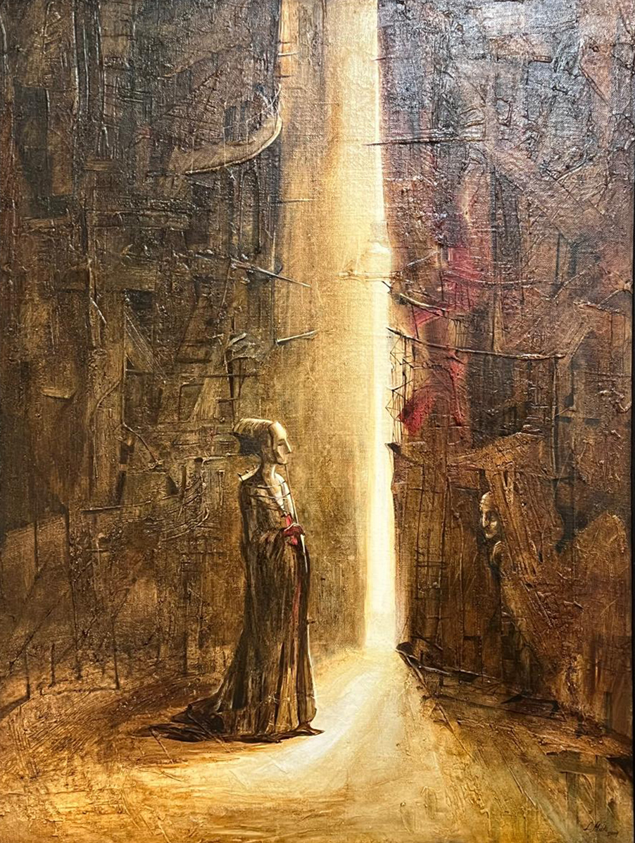 The painting is filled with philosophical meaning: it is a reflection on the path, choice, acceptance of light in the darkness. The work makes the viewer want to look beyond the edge, find answers and meet their own shadow on the threshold of change.