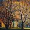 Картина Сергея Бухалева «Избушка в лесу» — это сказочный и тёплый осенний пейзаж, в центре которого находится уединённое жилище, окружённое пышной золотой листвой. Работа наполнена ощущением уюта и таинственности, созданным благодаря игре света и тени.
