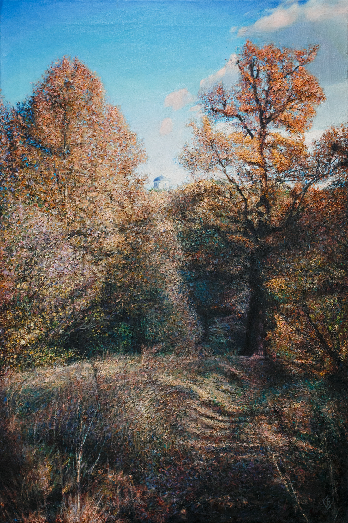 «У дуба в Коломенском» Сергея Бухалёва — это медитативное произведение, воспевающее устойчивость и красоту природы в её цикличном обновлении. Мощь старого дуба на фоне золотого увядания передаёт ощущение вечности и покоя.