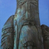 Картина Сергея Бухалева «Идол» представляет собой масштабный драматический портрет, на котором изображен древний монументальный деревянный истукан или тотем. Художник отказывается от широкого пейзажа, концентрируя все внимание на фактуре и мощи этого артефакта.