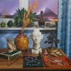 Натюрморт Сергея Бухалева «Поездка в Египет» — это детально проработанная картина-воспоминание, в которой предметы быта тесно переплетаются с экзотическими трофеями из дальнего путешествия.