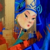 China is an amazing country with a rich culture and traditions. A Chinese woman in a festive dress demonstrates the uniqueness of fashion. The artist's work, done in the abstract style, shows how to combine the traditional and the modern.