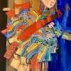 The use of oil, acrylic and gold paint creates a unique relief pattern that adds luxury to the painting. This artistic direction reflects respect for traditions while searching for new forms.