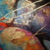"Planet of BUTTERFLIES" takes us to a fantasy world where colors and shapes intertwine into a harmonious symphony. The artist uses metallic paint that changes shades depending on the lighting, adding vivacity and dynamics to the image. Contrasting cold blue and warm red tones create a sense of internal struggle and transformation.
