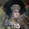 The work combines history with folklore, creating a metaphor for time and tradition. Catherine in her outfit symbolizes the connection with cultural heritage. Her look into the future predicts the immutability of traditions in a world of change, and the golden and brown tones create an atmosphere of reflection. The tree branches hint at the cyclical nature of life, and the dome in the distance symbolizes the connection between the sacred and the secular, embodying the harmony between the past and the present. The painting is currently on display at the State Kremlin Palace in Moscow.