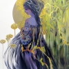 We see a painting in which the artist masterfully weaves together the symbolism of nature and femininity. The female figure, surrounded by golden rays, evokes the embodiment of a goddess symbolizing harmony and spiritual strength. Her pose and inward gaze create a sense of introverted meditation.