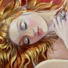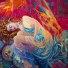 The painting embodies the essence of dreams and tranquility, skillfully weaving a silken web of color and texture to create an atmosphere of comfort and mystery. The nude figure, reclining amidst a kaleidoscope of cushions, is immersed in her dream world; here, the boundaries of reality dissolve in a mysterious interplay of light and shadow. The delicate translucence of fabrics symbolizes the fragility and ephemerality of fantasies, while the rich, warm hues of the surroundings contribute to a sense of serenity and security.