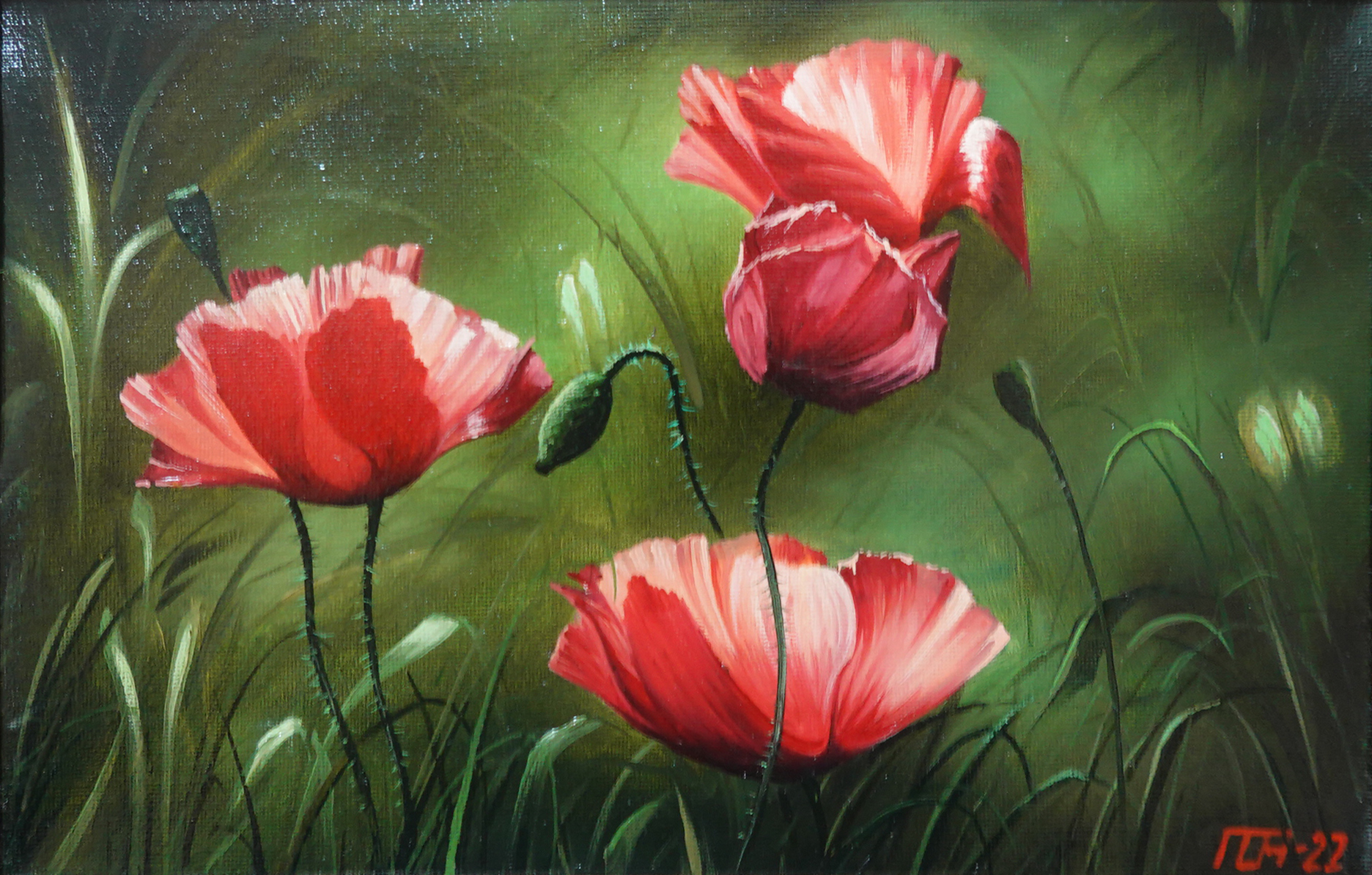 An original painting is for sale online, created by contemporary Russian artist Podgornov O, painted in 2022, “Poppies - 001.”