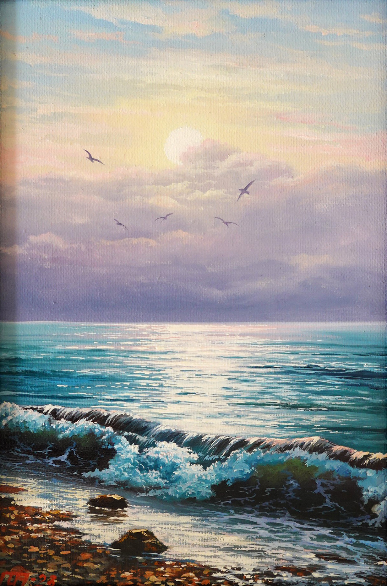 Podgornov O.’s painting “Wave-008” is not just a depiction of a seascape, but a picturesque reflection of morning tranquility, when the sky and sea merge in a unified harmony, creating an atmosphere of peace and hope. The artist creates a canvas filled with light, air, and silence, as if inviting the viewer to the ocean shore to greet the dawn and feel a surge of strength and inspiration. His landscape conveys a harmonious combination of grandeur and tranquility, strength and tenderness, creating a captivating and inspiring image of the sea at the dawn of a new day.