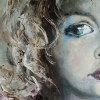 The painting depicts a large portrait of a child, most likely a girl, with a deep and thoughtful look directed to the side. The color palette is gentle and muted - soft blue, lilac and pearl shades prevail. The artist masterfully conveys the fragility, purity and naivety of childhood, emphasizing the expressive eyes, full of trust and interest in the world. The background is blurred, abstract, which emphasizes the airiness of the image and enhances the impression of lightness and weightlessness of the painting.