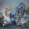 The painting «Sea dreams» by Ekaterina Kudryashova is an elegant still life imbued with the romance and freshness of the sea breeze. The artist uses thick, impasto brushstrokes that give the image tangible volume and a special emotional depth. Next to the delicate, intricate shell are tender blue flowers, as if emerging from the sea depths or coastal meadows.