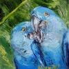 Ekaterina Kudryashova's painting «Heat» is an expressive and emotional canvas conveying the atmosphere of a tropical midday. Two bright blue parrots, captured in close-up against a lush green background, embody life itself under the scorching heat. Thick, energetic palette knife strokes create the effect of vibrating, sun-warmed air and dense plumage of the birds, which seems almost tangible.
