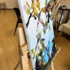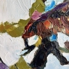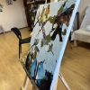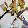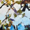 The painting is an abstract image of tree branches with leaves against a bright sky. The artist used thick, textured brushstrokes, creating a sense of movement and a light breeze, as if the branches were really dancing. The color palette includes various shades of green, yellow, brown, as well as accents of purple and blue. The sky is done in bright and light shades of blue with smooth transitions to white, which adds lightness and a feeling of a sunny day to the painting. The image created in this work conveys a sense of harmony and unity of nature, and the bright colors and loose brushstrokes enliven it, creating an energetic, but peaceful atmosphere. This painting is suitable for people who appreciate bright and emotional landscapes with elements of nature. It will be a wonderful decoration of the interior in the living room, dining room or even a creative studio, where inspiration and a feeling of warmth are needed. The painting can also be a gift for those who love spring and sunny themes, abstract art and the symbolism of harmony with nature.