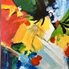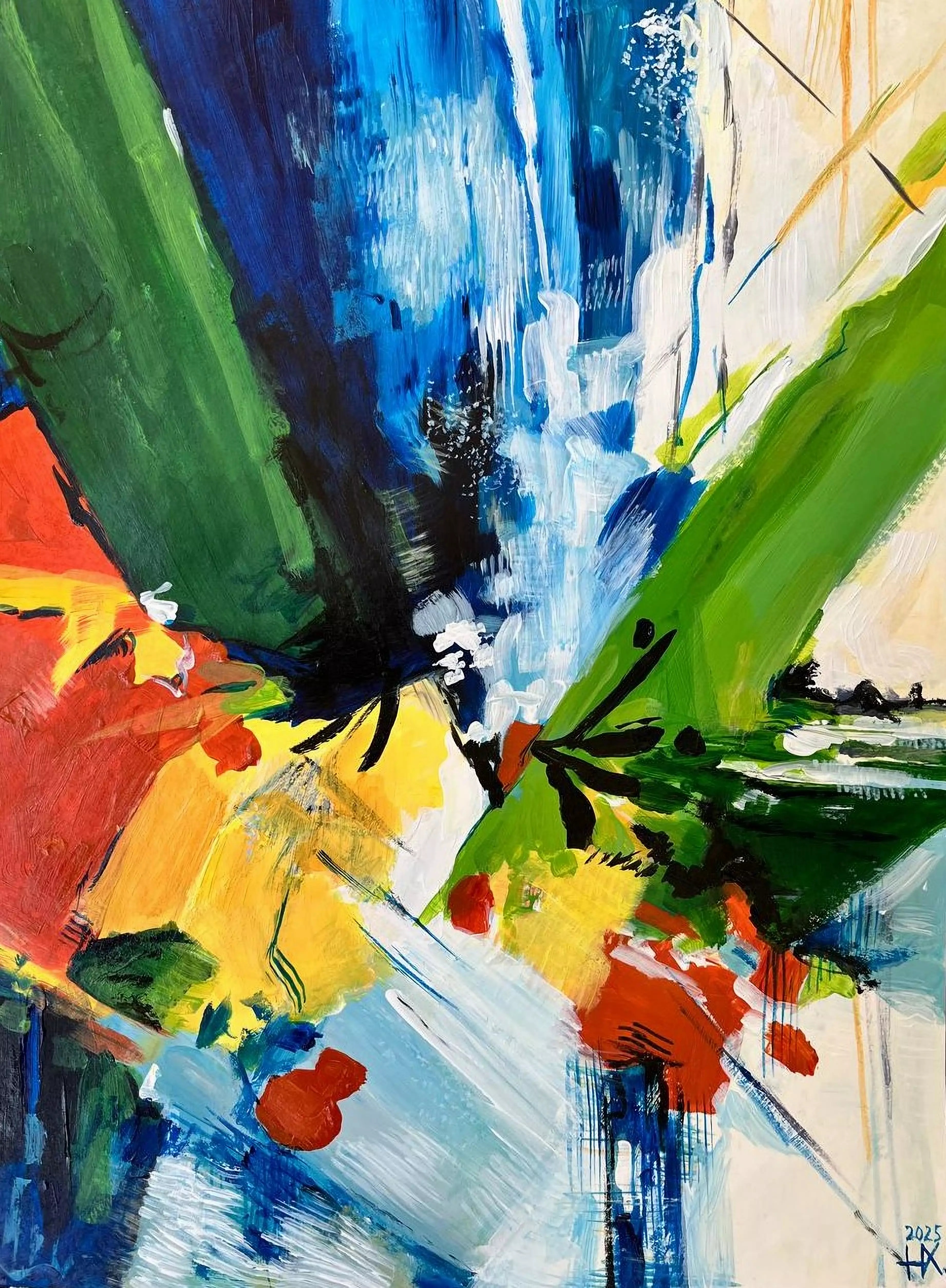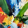 The painting is an abstract image made in rich and expressive colors. Green brushstrokes create the impression of leaves or vegetation, adding a natural dynamic. Blue and white elements are associated with water or the sky, creating a feeling of lightness and freshness. Bright red and yellow accents enliven the composition, giving the painting energy and warmth. The free, expressive brushstroke technique adds a sense of movement and emotional depth to the work, creating a feeling as if nature is coming to life on the canvas. Suitable for whom: This painting is suitable for lovers of abstract art and modern expressive works. It will be a wonderful addition to the interior in the style of minimalism, loft or modern, adding a bright accent. The painting is perfect for a living room, office or studio, enlivening the space with its energy. It is also a good gift for creative people or those who are looking for inspiration in the harmony of nature.