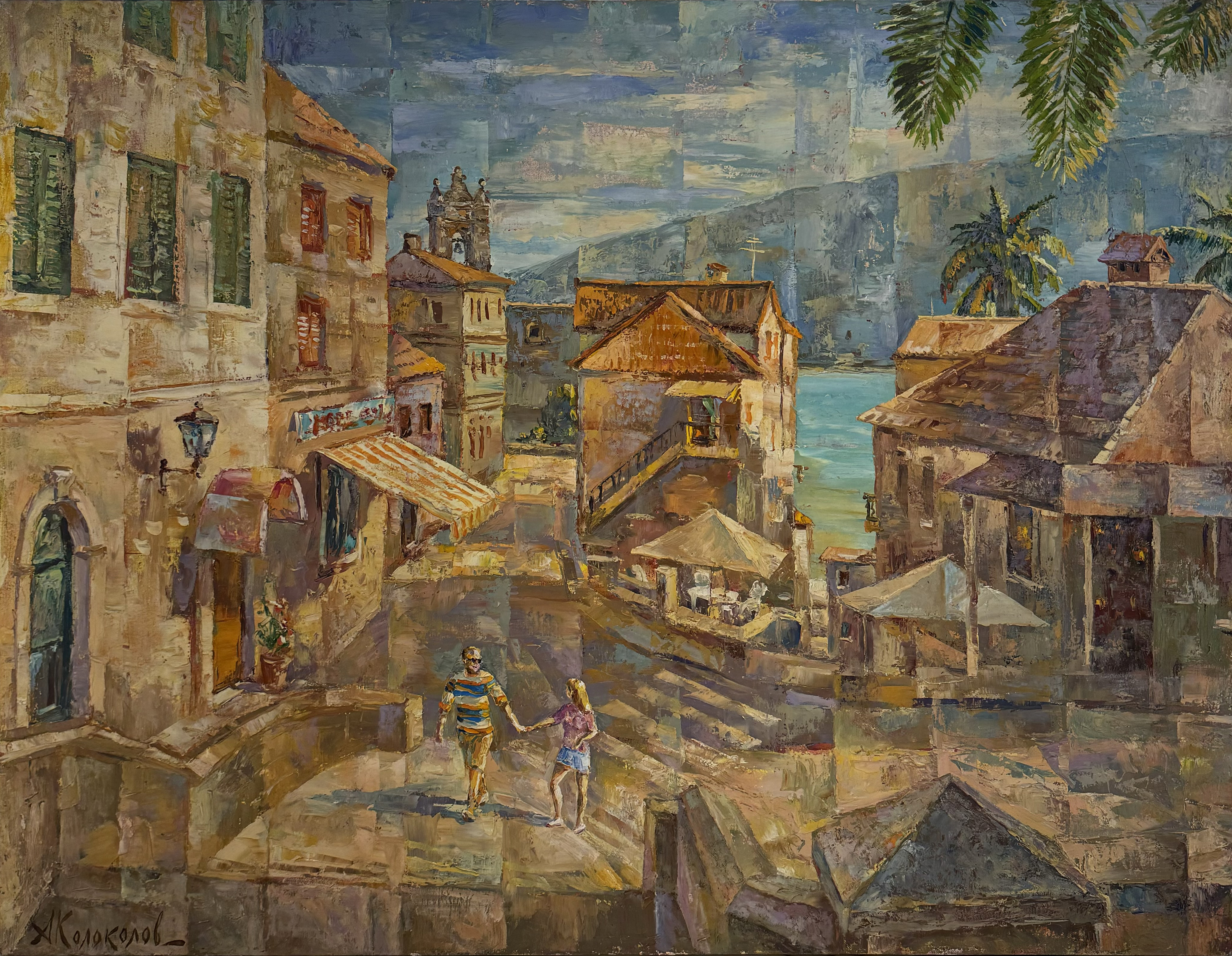 Kolokolov A.’s painting “Street in Herceg Novi” is not just a depiction of a street in a seaside town; it’s a vivid and emotional narrative about the beauty of Montenegro, its unique atmosphere, and the charm of the Adriatic coast. The artist creates a canvas imbued with sun, light, and sea air, as if inviting the viewer for a stroll through the narrow streets of Herceg Novi, where history intertwines with modernity, and the beauty of nature inspires creativity. His landscape conveys a harmonious combination of architecture, sea, and mountains, creating a unique atmosphere in this amazing place.