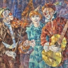 Kolokolov A.’s painting, entitled “ Merry melody,” is not just an image of three clowns, but a captivating journey into the world of circus magic, music, and sincere emotions. In his unique manner, the artist creates a bright and memorable canvas that radiates energy and optimism. There is no place for sadness or longing in this work; unbridled fun and sincere joy reign supreme.