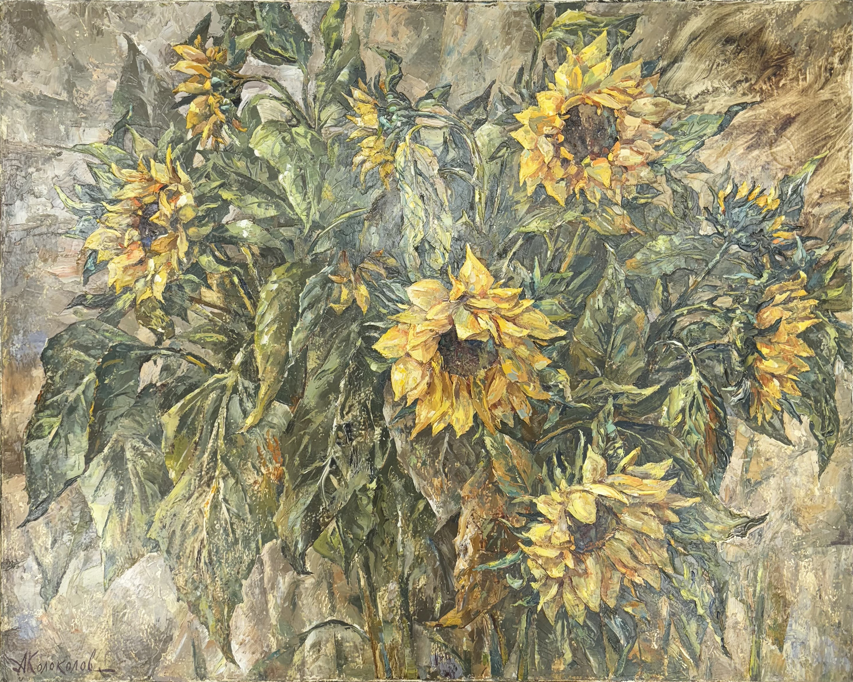 Kolokolov A.’s “Sunflowers” is not just a still life depicting flowers; it is an ode to the sun, summer, and the indomitable force of life. The artist fills the canvas with bright colors and energy, creating an image that radiates warmth and optimism. In his sunflowers, one can feel the power of nature and its ability to give us beauty and joy even in the simplest things.