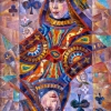 The painting "Queen of Clubs" is a bright declaration of love for the classics and experimentation at the same time. The artist was inspired by the traditional image of a playing card, but formally and compositionally he took the character beyond the usual patterns. Before us is a double portrait, executed in a cubist manner: strict geometric shapes, many intersecting lines and edges, a rich palette of shades of blue, violet, ocher and ruby. The Queen of Clubs is presented from two sides, as if a mirror reflects the same figure, but each shows its own life - facial expressions, look, mood are slightly different. In her hands, the character holds a light flower - a symbol of purity, grace and inner harmony. Associative elements serve as a background: a recognizable club symbol, additional silhouettes and abstract spots that emphasize the dynamics of the composition and the complexity of the concept. The main impression of the painting is a dialogue between statics and movement, history and modernity. The deep psychology of the image is revealed through the play of color and texture. The lady's gaze seems thoughtful, slightly detached, as if she is keeping an ancient secret. The painting is mesmerizing in its multi-layeredness: behind the laconic form lies a whole spectrum of emotions and meanings. "Queen of Clubs" is a portrait of mystery and dignity, an image of a creative woman, in whose face the culture that has been layered over centuries is reflected.