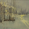 The composition is done in cold gray-blue and lemon tones. Amidst the thin tree trunks, a stream of light suddenly breaks through, like a sunbeam breaking through thick fog. The picture is filled with movement and a half-hint, as if it were a memory or a dream in which it is difficult to discern the boundaries between reality and fantasy.