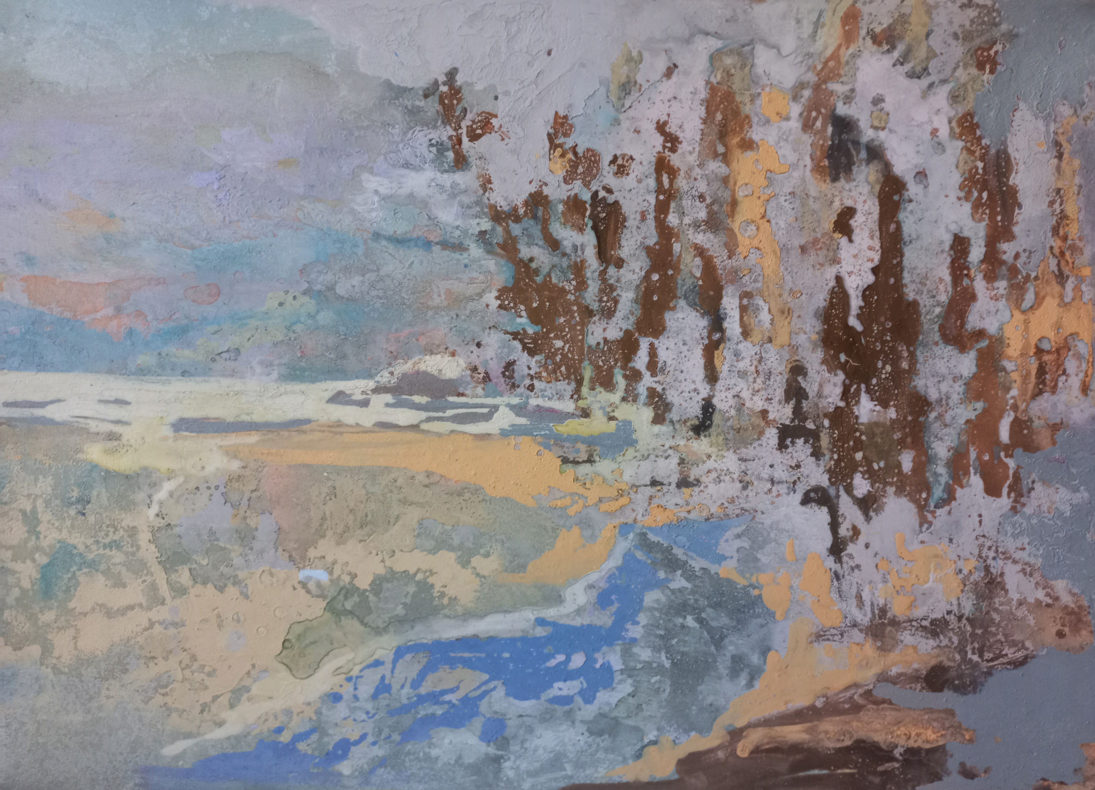 The painting “First Ice” captures the fine line between autumn and winter, between liquid and solid, between warm and cold. This is not just a landscape, but a meditative reflection on the transitional states of nature, on its elusive beauty at the moment of transformation.