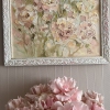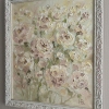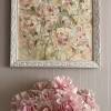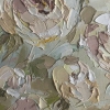 This painting is done in the impasto technique, where thick strokes of paint create a picturesque volume and texture. The viewer is presented with a scattering of delicate flowers, probably peonies or roses, done in a light pastel palette. Shades of cream, pinkish and white smoothly intertwine with soft green leaves, creating a feeling of airiness and lightness. The painting is filled with tenderness and romantic mood, and its muted and harmonious tones convey an atmosphere of coziness and tranquility. The lightness of the strokes and free manner of painting make the composition picturesque and natural, allowing the viewer to feel the fragile beauty of flowering plants.