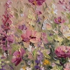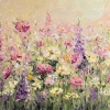 The painting depicts a picturesque summer meadow, overflowing with flowers in warm pastel colors. Soft brushstrokes and voluminous texture create an impression of lightness and airiness. Pink, lilac, white and yellow flowers seem to sway in a light breeze, shimmering with shades under the rays of the sun. The background is filled with delicate peach and pale yellow tones, creating the effect of warm sunset light. The painting conveys an atmosphere of serenity, harmony with nature and awakens a feeling of joy and calm.