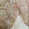 The color palette of the painting consists of soft pastel shades - soft pink, cream, white and gold, creating an atmosphere of spring lightness and romance. The abundance of voluminous strokes makes the image dynamic and creates the effect of living, quivering nature.