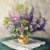 A bouquet with lupines, daisies, wild strawberry flowers, and other herbs.